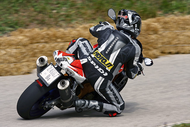 Tak já to teda trochu uvedu na pravou míru bigsmile Po pár jízdách na okruhu a trošce kilometrů v provozu bylo zjištěno, že RR jede a to dobře, ale má to pár much. Peťa nedošáhne na zem díky příliš širokému sedlu a při rozjezdech v provozu je to trochu o hubu. Já sice došáhnu, ale na okruhu z toho nemám úplně ten správný dojem - posez je moc řekl bych krátký help Ikdyž podle fotek se mám kam posunout dozadu zadkem, tak mi to prostě nějak nejde smile2